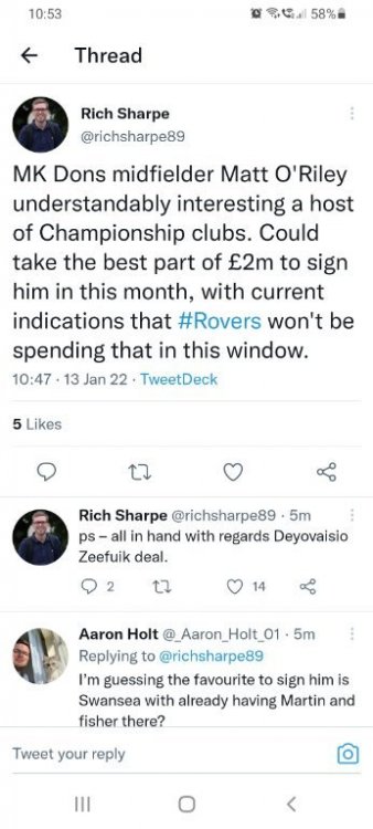 We will see. It is a reasonable expectation to expect that if the owners genuinely do give a shit, that after the Armstrong sale, with us 3rd in the league and looking light in terms of the squad, that they invest between 2/3-4m on new signings to give it a reasonable go. We are not in a position to let any senior players go. I wouldn't want Johnson in the side for any length period of time, he should never play in defence and I would like someone to be brought into central midfield ahead of both Johnson and Davenport. But we will get injures, covid absentees, suspensions etc and we need more players, not less. He brings experience and has contributed a few times off the bench in our winning run. -