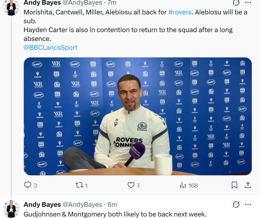 9. Seems, and hope, someone has been a tad mischievous. You will note, I caveated with question mark and 'if correct'. Let's see where we are next week then. Surprised Montgomery might be back - weren't we advised 4 to 6 weeks?