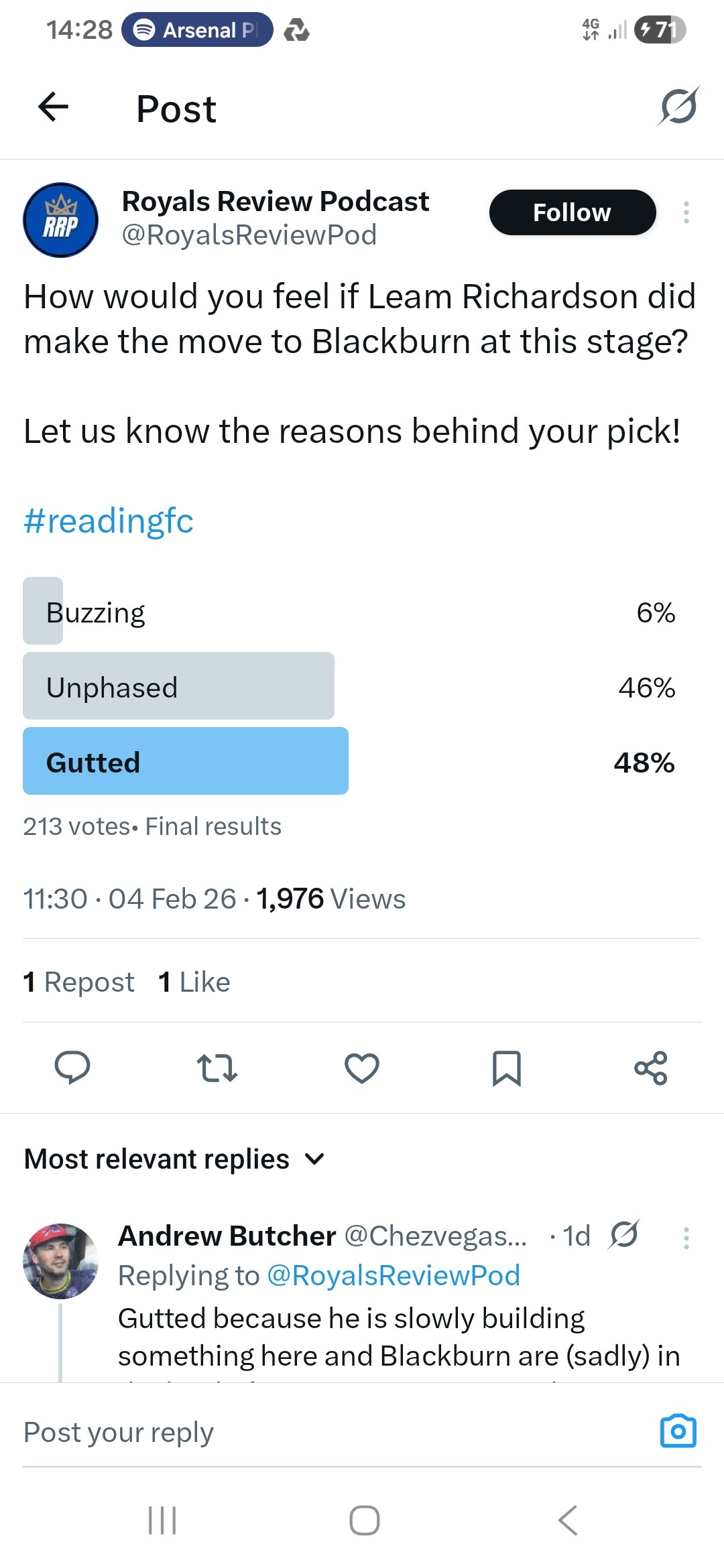 It makes absolutely zero sense for us to take an interest in Richardson. He was unemployed for over 18 months after he was sacked after a short failed spell at Rotherham, and has been at Reading for 15 games. We would now have to pay them compensation. There are far better, safer and more interesting options who are unemployed and we could use the compensation money to pay them a bonus or higher wage. He isn't good enough and certainly not good enough to warrant paying a good chunk of compensation for. His Championship record at Wigan and Rotherham is dismal, infact other than 1 League One season at Wigan after they were relegated and a few games at Reading in League One he's never done it. The links to Blackburn are stretching it big time - time in our academy going on 30 years ago should be irrelevant.