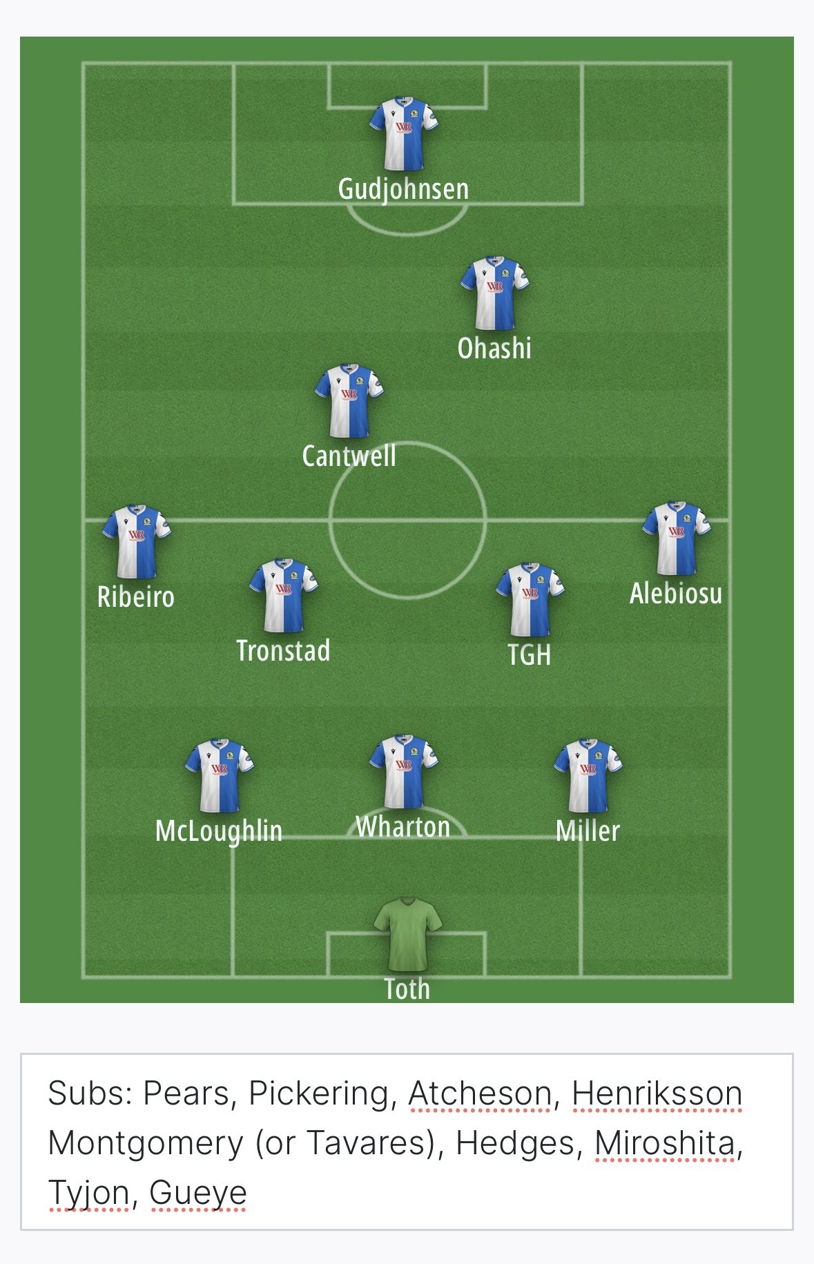 I'm usually dead against a back 3, as I don't really think they work for teams at our level, but after last nights abysmal effort, I think a few things need to change: ----------------------Toth ------------Miller---Wharton---McLoughlin Alebiosu-------------------------------------Riberio -----------------Tronstad---TGH ------Morishita-------------------Cantwell --------------------Ohashi All of our good attacking play comes from the full backs. You could switch Riberio out for Hedges, if needed. We don't have any really good wingers. Kargbo is dreadful, Morishita is ineffective, De Neve doesn't get any games, Hedges is ok but nothing special. I think Morishita will have more success playing a bit more centrally, he struggles outwide, you could try Hendrikson in that role but he looked someway off being good enough in the time he's been on the pitch also. Having 3 centre backs, including 2 that have a good amount of Championship experience might benefit us defensively, where we have looked suspect. Might suit Miller more as well, he's not looked too good in a flat back 4. -