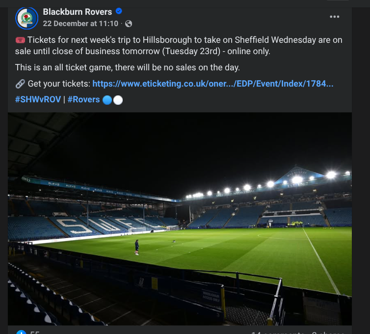 Let’s summarise the position here… - Rovers sell digital tickets online - the Sheff Weds tickets are digital - home fans can still buy them via SWFC - away fans can’t buy them from Rovers nor Wednesday (for away areas of Hillsborough) Its boff all to do with staff “holiday entitlements”, the club shop sometimes not opening on Mondays or revenge for the boycott call. Someone, somewhere, with authority at Rovers has decided to take them off sale on the Rovers website. The key questions to ask are “who” & “why” because I can’t think of any positive reason for this course of action. 🤷♂️ -