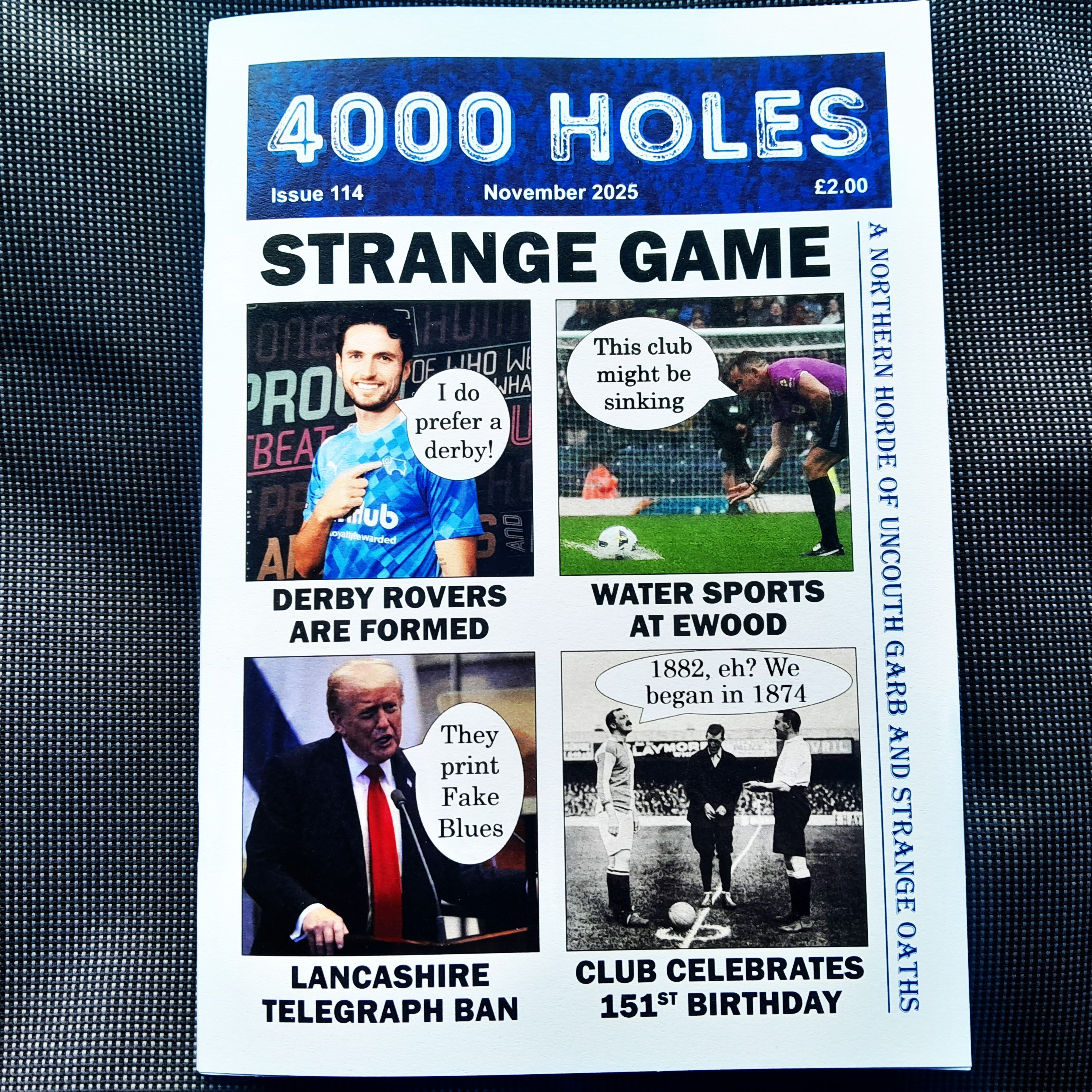 The bumper Issue 114 of 4,000 Holes is now on sale for just £2.00 and can be purchased ONLINE HERE or via EBAY HERE. It will also be available to buy on Kidder Street before the forthcoming home matches. Thanks for your interest! Includes... The Origins of Rovers, Strange Strange Game, Donald Trump or Blackburn Rovers, Let’s Parler Franglais with Rudy et Valérien, A Doctor Writes, 101 Great Goals, Mick McGrath tribute, Don't You Forget About Me, Great one-off kits, Fanzine Culture, Over the Wall Boys Rule, Rovers' Titanic Charity Shield, Many Miles From Home, The Jigsaw Man, Who Were You?, Crossword, Greatest Rovers XI and much more...