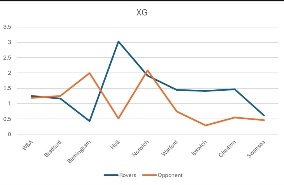 Not a great spectacle last night, but I don't think we are quite as bad as some would say on here. I noticed a stat on Rovers underperforming on XG on the screens before the game by about 3 goals, so I put this together (bored at work, XG means nothing I know). We've been comfortably outperforming the opposition on XG recently. Yes, XG doesn't win you points, but perhaps indicative that we aren't as awful as som would suggest -