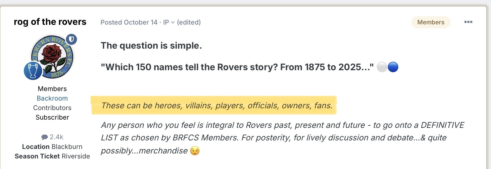 ... replied to Herbie6590's topic in Blackburn Rovers Fans Messageboard