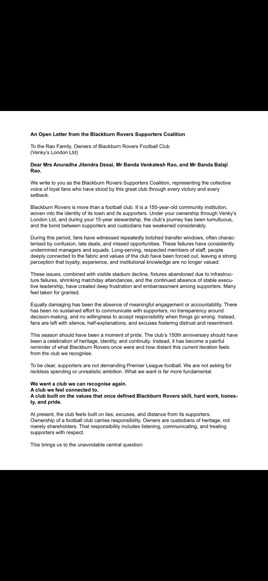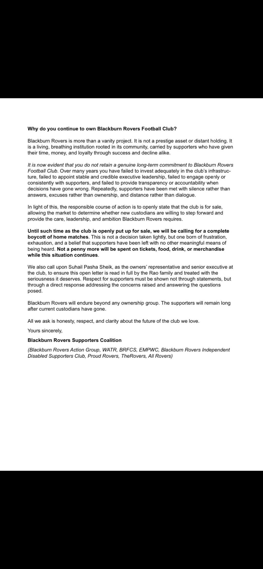 Well done. Professional, to the point and putting across the exact message that needs to be put across. Unfortunately I think those willing to boycott are basically already unofficially doing so, even if they aren't calling it boycotting, but it's right to put the call out anyway. There's a difference between valuing the club as a whole and only valuing being a supporter of a club. -
