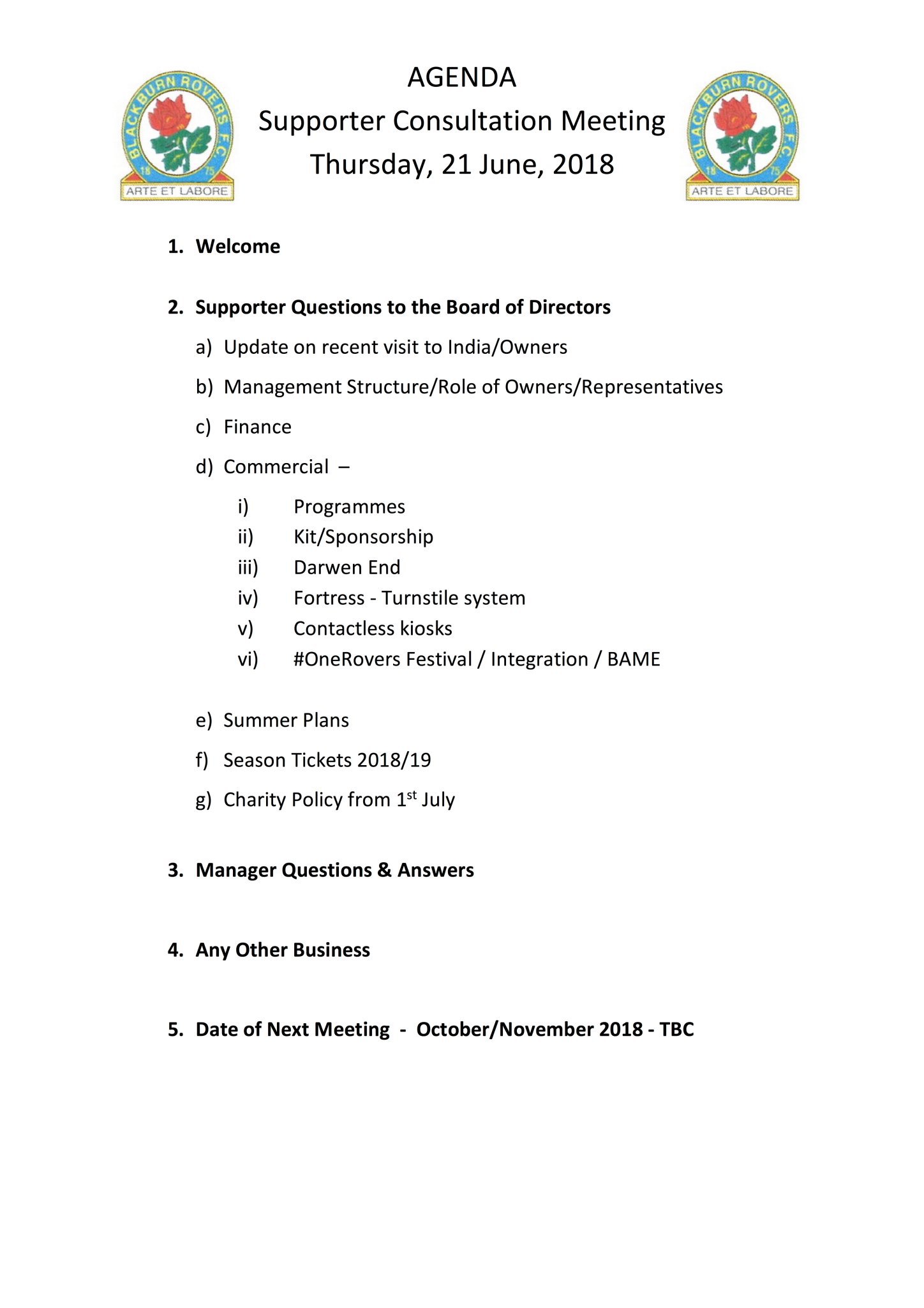 J*B Posted June 7, 2018 Posted June 7, 2018 It's that time again - i've just had an e-mail come through inviting BRFCS to the Supporters Consultation Meeting on Thursday 21st June. We get 5 invites - two have to be continuous attendees so will be taken by BRFCS admin/mods. If you want to come as part of the other three please send me a PM. If you have anything you want suggesting to the agenda please post below. Quote