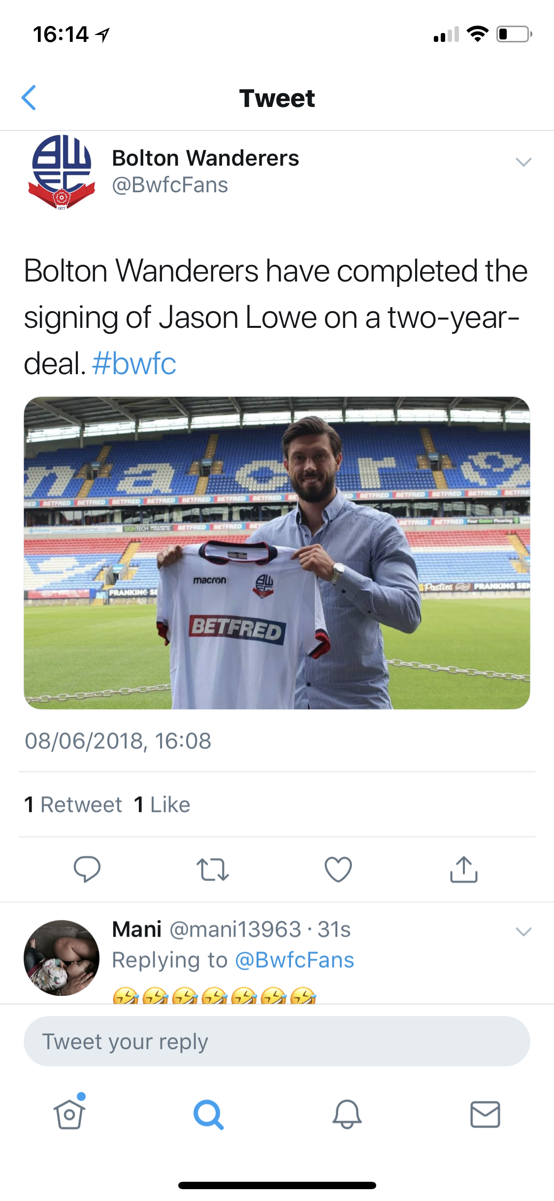 tomphil Posted June 8, 2018 Posted June 8, 2018 Lowe finally signs for Bolton. 12 months after I first called it but who's counting ? 1