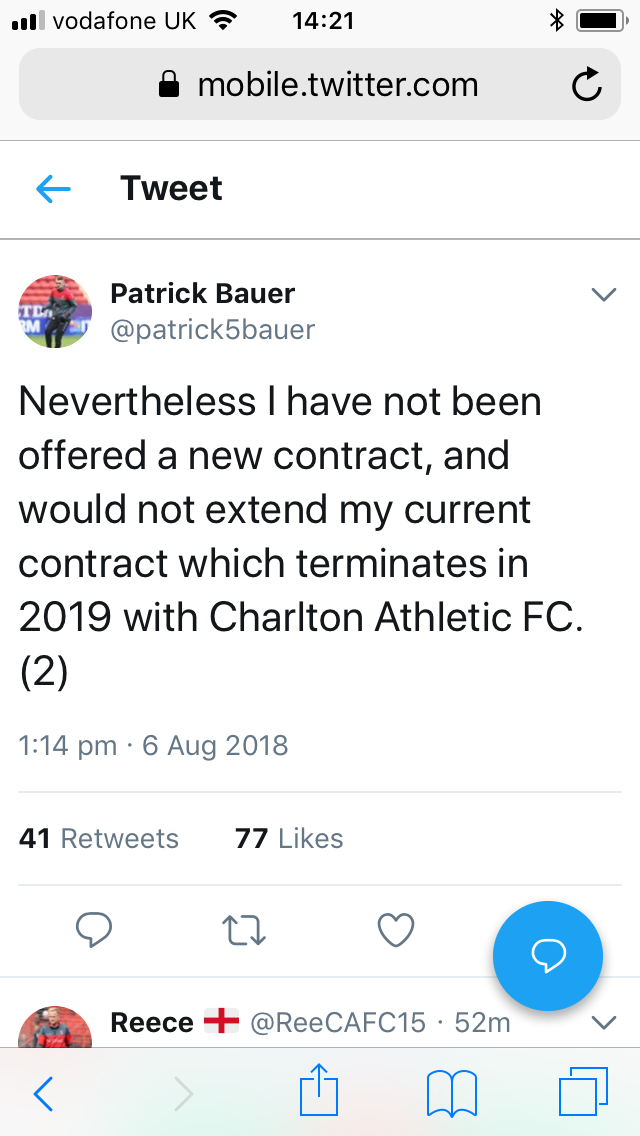 Angry_Pirate Posted August 6, 2018 Posted August 6, 2018 Before anyone slags off Bauer for his tweet along with the 'avoid' comment, think about how much of a mess Charlton are in (off the pitch). He is being chased by clubs a division higher whilst at a club who are being run as bad as us circa 2011-2013. He is simply stating he will be leaving on a free in 12 months. Isn't that the same as giving your notice at any job? If I was TM, £400k offer should be going in.