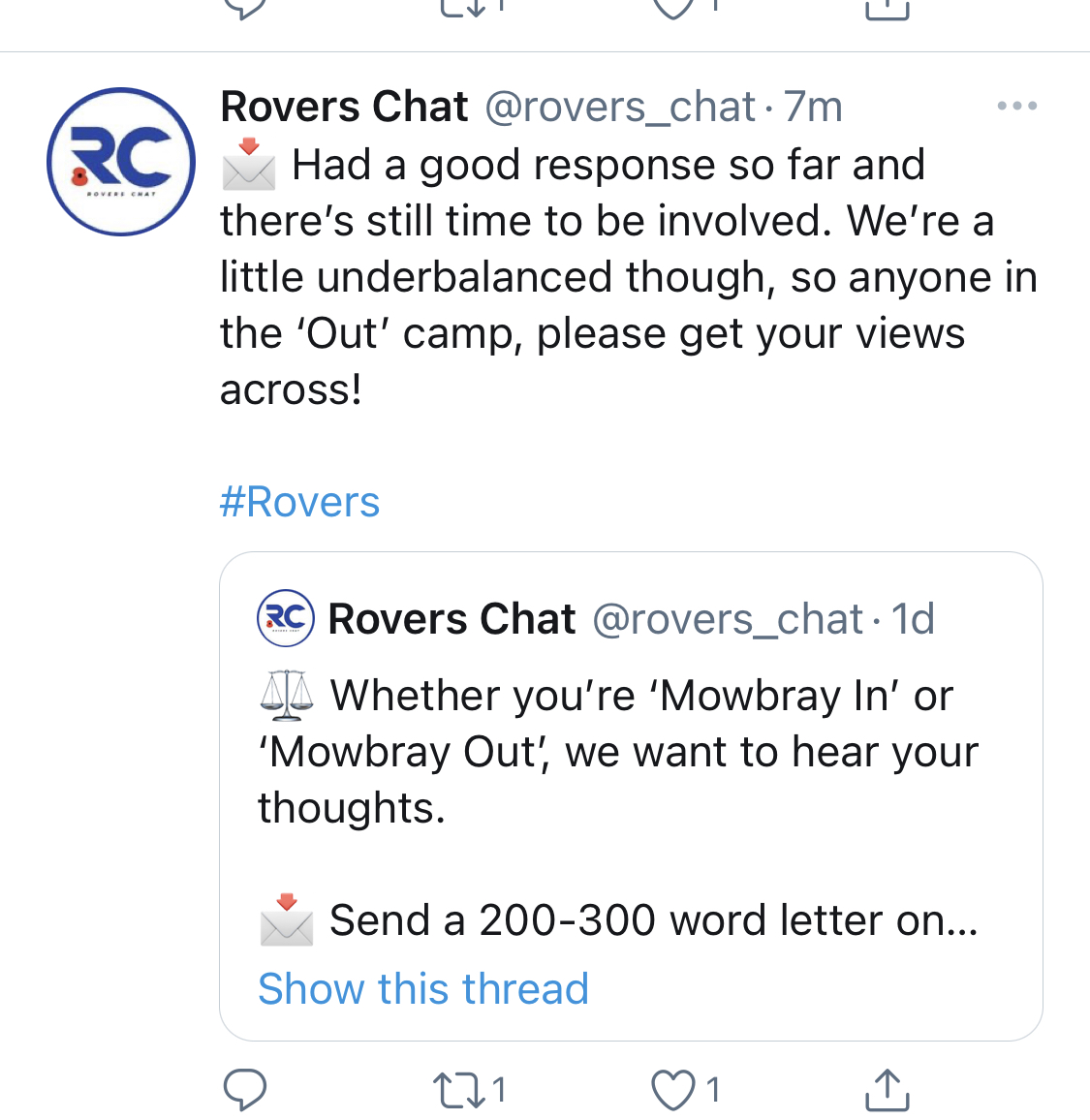 Herbie6590 Posted January 11, 2021 Posted January 11, 2021 Our friends at Rovers Chat are soliciting opinions from people who want Mowbray out...some on here may wish to make contact I suspect... Quote