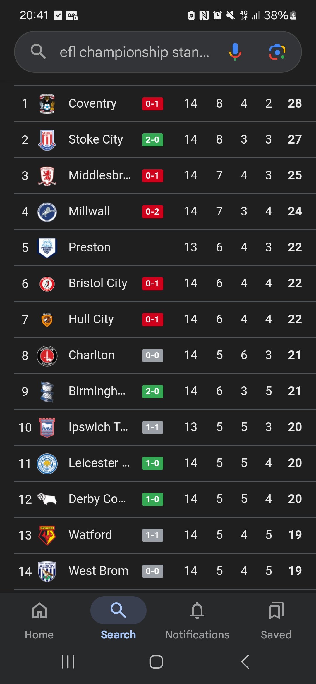 ... Posted 3 hours ago Posted 3 hours ago As it stands it puts us in 18th. Top end of the table having a tough go of things tonight. Cov losing 1 Quote