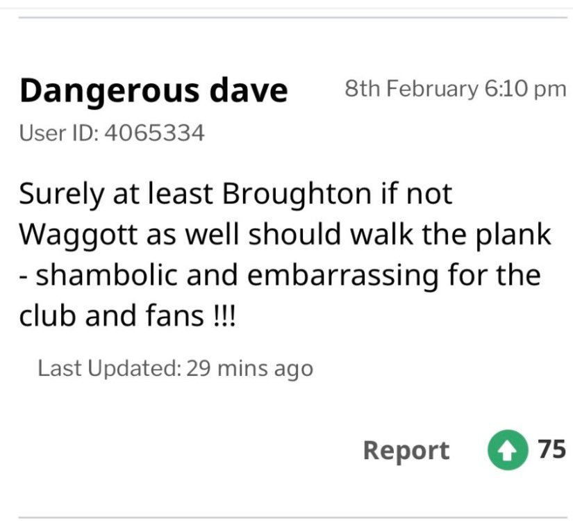 Amazingly though : the Waggott and Broughton out brigade gathers momentum. reminds me of the shagnew pile on. id be pointing the finger at the people who employ them tbh. its all well and good pruning the branches every few years but the root will still remain -