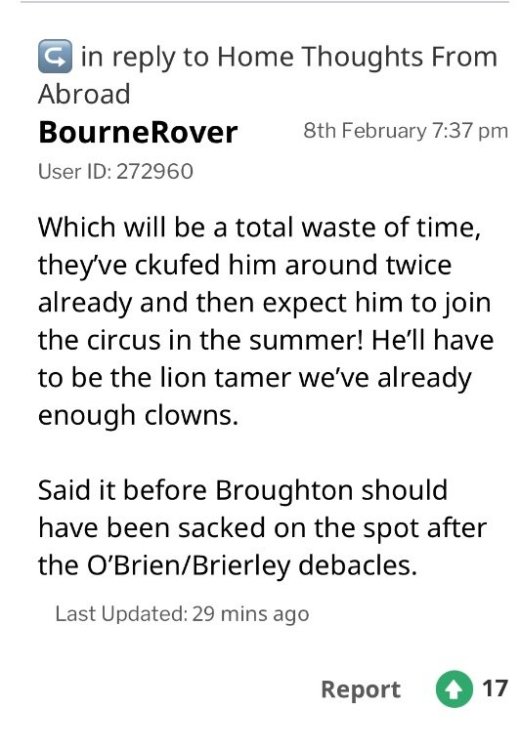 And here on in lies the problem. i have friends and family that attend purely to enjoy a game of football, get a few hours out the house. Most are season ticket holders. One is the nephew of Peter Devine they love rovers but arnt interested in the politics or drama. We may not agree on things Rovers but I always take their comments into consideration when I interact with them and wouldn’t dream of belittling them. opinions are like A****** we’ve all got one. To move ANYTHING forward we need to respect and support each other’s opinions. i was discussing protesting with them and they are of the opinion it divided the fan base last time and created a toxic environment. We need to be smarter than that, as one of the guilty parties I feel ashamed. smart planning respectful dialogue. Not too much to ask is it? It’s in black and white what has happened with this transfer. Anyone blaming anyone else just point them to the article where it confirms venkys pulled the plug. Certainly with the first deal. And this will sound a bit controversial but I don’t actually blame them for the loan collapsing. The numbers were ludicrous. KEEP THE BLUE FLAG FLYING HIGH -