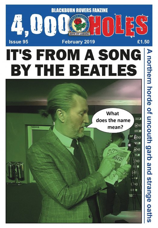 17. WE'RE BACK WITH A BRAND NEW ISSUE!! To order your copy of the fanzine please visit our ONLINE SHOP or purchase through eBay by CLICKING HERE. It's still only £1.50 and postage is 75p for first class delivery. Please note that a full £1 from each issue sold will be donated to local charities. We do this whenever we can if sales have been healthy enough to put us into profit. If you prefer grabbing a copy in person, the fanzine will be sold outside Ewood before the forthcoming home matches from an hour before kick-off (at the bottom of Kidder Street). Thanks for your interest! Issue 95 contains: We Spy On Who We Want!, Waggott Woes, The Brereton Enigma - Solved!, Tactics and Humility, Overheard in the Blues Bar, Kit Stories - 1960 FA Cup Final, Reffin' Hell, Sliding Doors #3, Voice From The Valleys, Who Were You? #9, There's Only One Simon Garner, The Evolving Nature of Fandom, Film Poster, Our Boy Dunn Good, Quizzes, Crossword, Tartan Army XI plus much more!