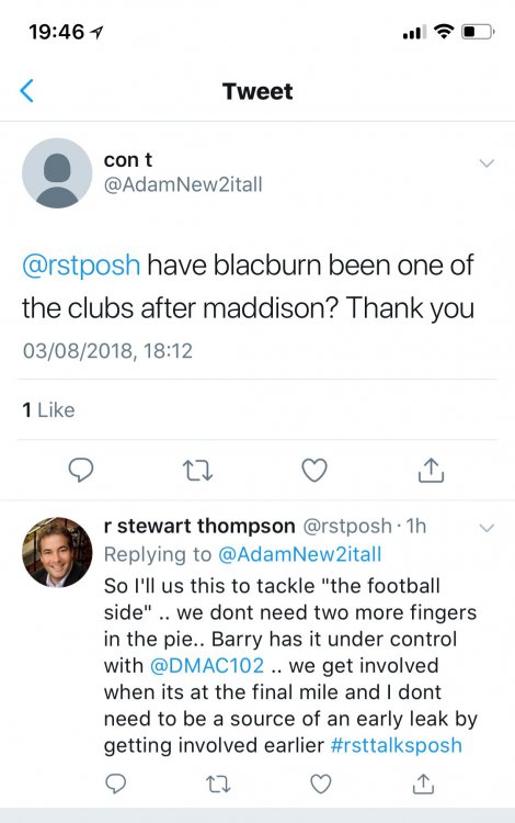 “Apparently someone is travelling to Blackburn tonight ready for talks with Rovers tomorrow about a move .... interesting” ?