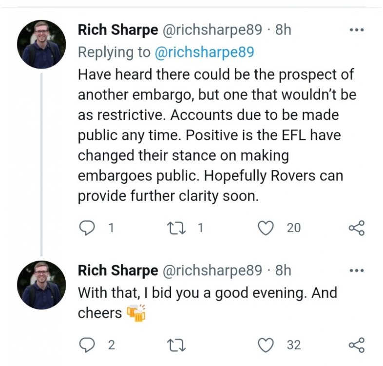 I have no idea if this represents good news or bad news for Rovers. Clearly it is something to do with the P&S compliance and the embargo. But is it a permanent injection or a bridging loan payable back when Armstrong is sold? Who fecking knows !?