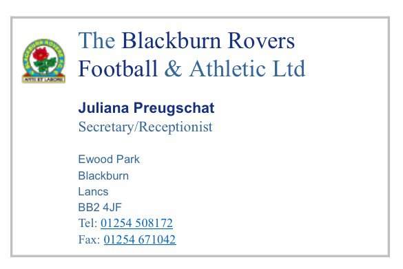 17. I thought was exc that Club was able point me to forum Not all Clubs show interest in fans Only after £££ It was Juliana Preugschat that replied to email I sent Club replied more than once second time informed of Forum (pic is her name etc that came with email) She said she has been with Club over 30 years