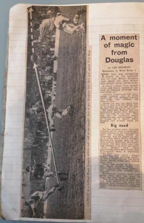 Some more cuttings including commentary on the best goal I ever saw at Ewood Park. Bryan Douglas V West Brom Easter Saturday 1963. There's a team photo- who can name all the players ?