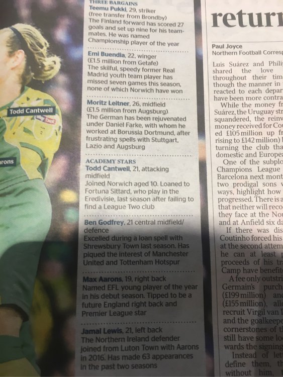 Good piece on Norwich in today’s Times. A combination of cut price/free foreigners and academy players. Must be a terrible flex!