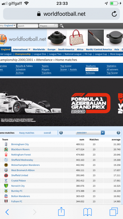 Just shows it’s becoming more of a PL2. Interesting to see how crowds have increased massively in this league over the past 15 years. In 2000/01 Birmingham’s average crowd was the highest in the league with 21,000, they still average 21,000 and they now rank 11th