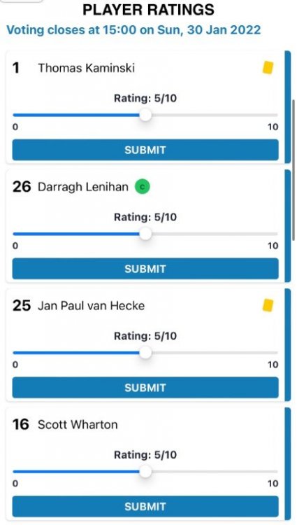Is now live! https://www.brfcs.com/magazine/football/match/717138/luton-blackburn?tab=voting You’re looking for “ratings”, which is under “table”. If you can’t see it, try refreshing the page a few times.