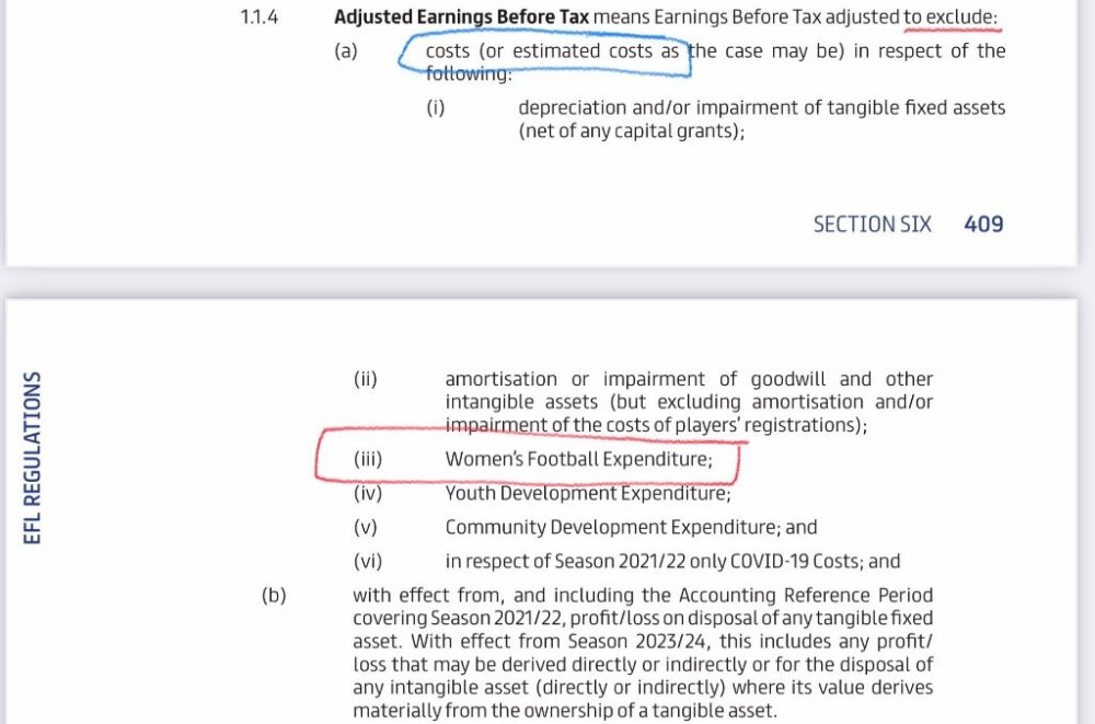 Seems to differ from the EFL website: https://www.efl.com/governance/regulations/#heading-annex-1-profitability-and-sustainability-calculation that says it is excluded?