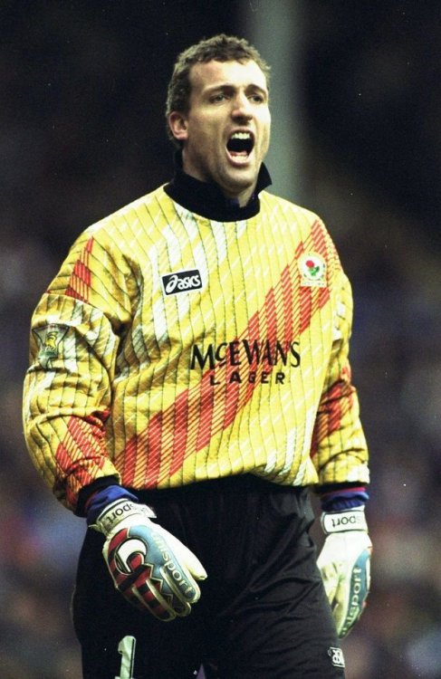 That design was used as a keeper’s shirt by Asics, the Asics logo presented like that on the reverse was popular with a lot of training kit at the time, the centred badge didn’t arrive on playing kit until the Uhlsport days so I would guess that this is a prototype or a manufacturing error ?♂️