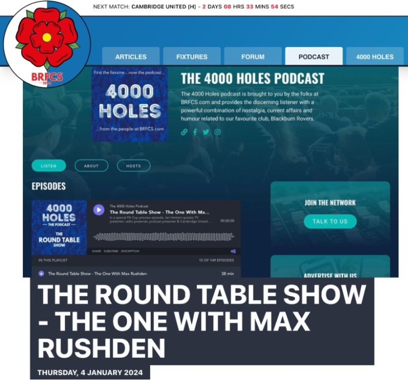 In yet another shameless rip-off of, sorry, that should read wholehearted tribute to, BBC 5 Live's much loved 'Fighting Talk' show, the panel tries their hand at a Rovers version once again as a seasonal treat. This is the second semifinal & features guests Mike Delap, Matt Grimshaw, Ian Herbert & Katharine McNamara. The questions are posed by Stuart Grimshaw. Which two panelists will emerge to go through to January's Grand Final ? Listening links here:- https://www.brfcs.com/magazine/podcasts/the-round-table-show-rovers-fighting-talk-2023-semi-final-2/41
