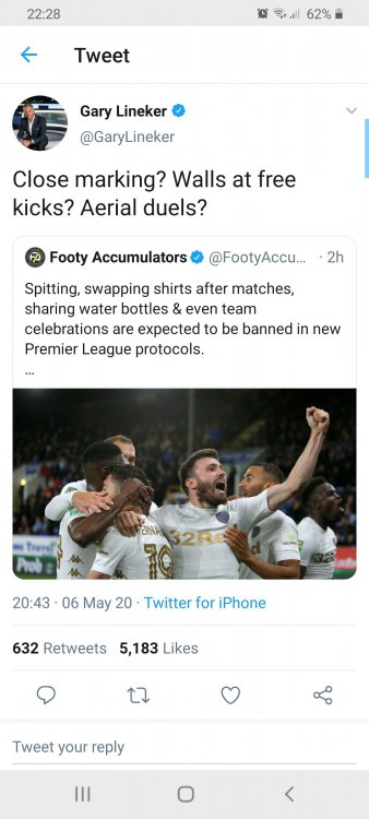 Football League Suspendedroversfan99 replied to Kamy100's topic in Blackburn Rovers Fans Messageboard Again potential legal issues are not the primary concern but the teams that go down or that dont get promoted will im sure suggest that it wasnt fair and that the integrity wasnt maintained playing behind closed doors at neutral stadiums and likewise the teams in 4th 5th and 6th in League 1 who are not promoted even though they occupied play off places and were in just as good as position as 3rd will I am sure issue legal proceedings. To think that finishing the season (well just the 2 top leagues) will remove any legal implications is naive and foolish. Playing behind closed doors especially if any players are unable to play due to having the virus or are unwilling to play will cause problems. NEITHER DECISION WILL BE TOTALLY FAIR! Another potential legal issue. You get more than the usual 3 subs. What happens if a 4th sub comes on and scores a winner? Is that fair? In your head, if the men in suits decide that the football will go ahead then it is all good to go no questions asked. With the potential for players to test positive and be unavailable or simply refuse to play that isnt the case. You keep using the words systems and procedures as if that is all that is needed, and as if they will 100% eliminate the risk within a contact sport and also ensure that everyone will be willing to play. This line about boosting the nations morale is a load of bollocks too. Footballers are not robots exempt from the virus or able to be wheeled out at the governments request to risk themselves and their families without having their own say.